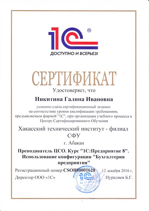 Так на базе Хакасского технического института – филиала СФУ был создан Центр сертифицированного обучения (ЦСО), призванный обеспечить качество обучения, соответствующее требованиям фирмы «1С».